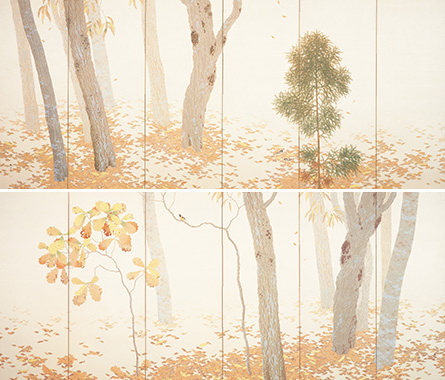 続いては、「秋景山水」「春景山水」。特に秋景はため息が出るほど美しかった。水彩のお手本にしたいくらいです。
