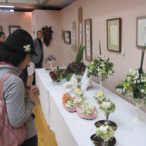 九段生涯学習館で文化芸術の秋フェスティバルの作品展が開かれました。陶芸、書道、フラワーアレンジメントなどの展示もありました。